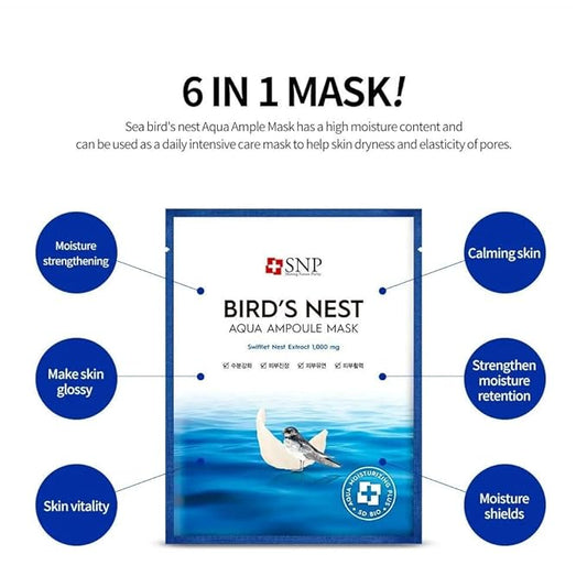 [SNP] Mascarilla Facial Coreana Hidratante Bird's Nest Aqua Ampoule (10 uni.)
