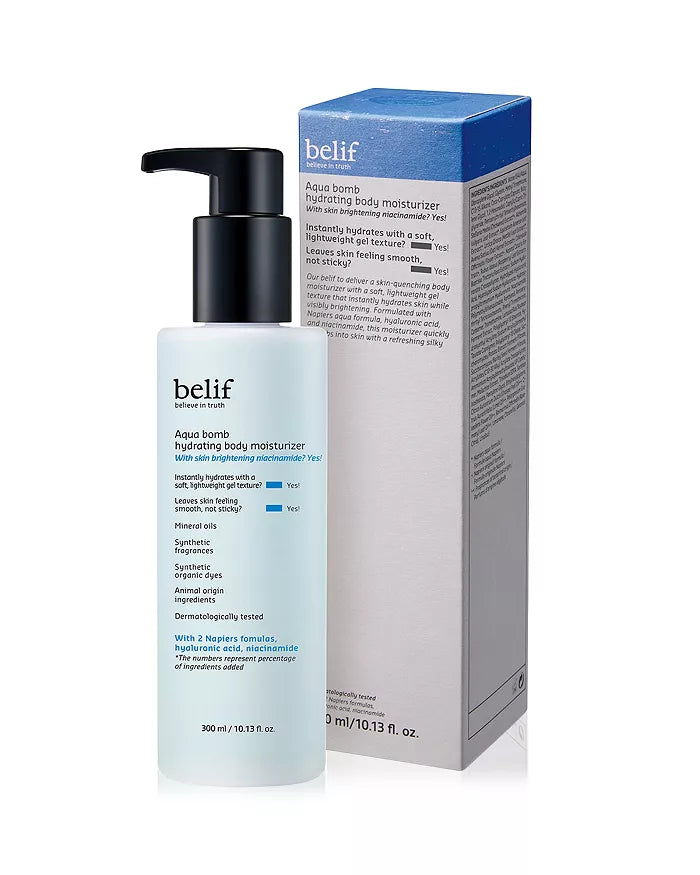 ¡El humectante facial Aqua Bomb más vendido de Belif ahora formulado para el cuerpo!